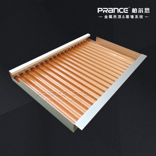 鋁合金瓦楞板采用鋁合金瓦楞芯和鋁合金板成型。成型后的瓦楞芯呈波浪狀,并加入粘合劑將于鋁合金面板粘合一起,成型后表面硬度比較好。實(shí)用新型的鋁合金瓦楞板不僅重量輕,用料少,產(chǎn)品的成本也低,且瓦楞的重疊波浪結(jié)構(gòu)提高板的平整度,也提高了板的承載力,承受壓應(yīng)力性能有了很大的提高,廣泛應(yīng)用于各類需要造型的場(chǎng)所。