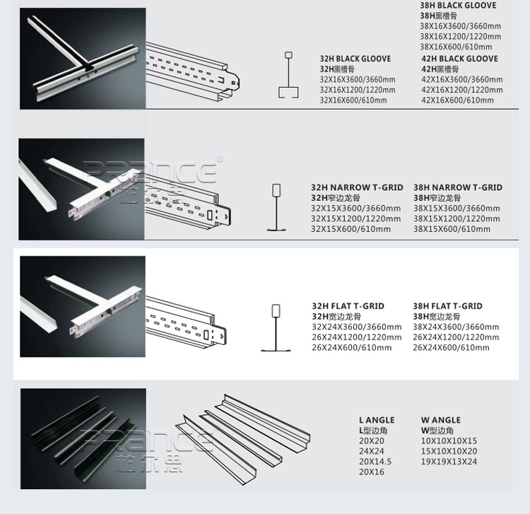 3、槽型烤漆龍骨。槽型烤漆龍骨有黑色、白色可供選擇,立體感強(qiáng),安裝便捷,體系牢固,可替代T型鋁合金龍骨。