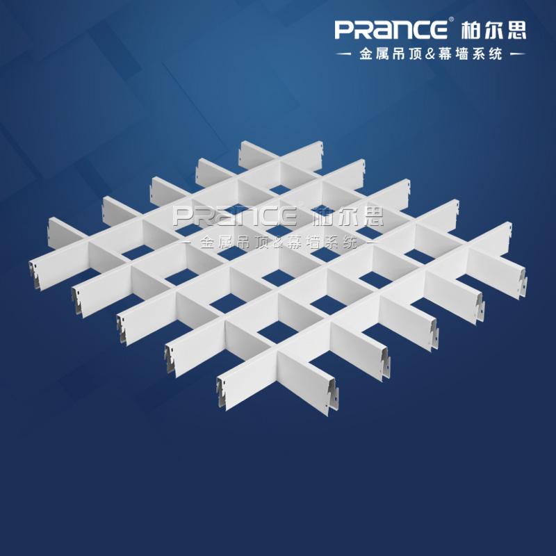 柏爾思鋁格柵天花吊頂系統(tǒng)分為格柵主骨和副骨。格柵主骨及副骨均為特制金屬空腹型板條。格柵主骨及副骨縱橫交叉并進(jìn)行單元組合而成的開敞式裝飾吊頂。常規(guī)鋁格柵寬度標(biāo)準(zhǔn)為10mm或15mm,高度有35/40/45/50/60/80mm可供選擇,常規(guī)長度分別是2000/1980/1950/1920/1800mm。鋁格柵格子尺寸分別有50X50mm, 75X75mm, 100X100mm, 150X150mm,200X200mm表面涂層一般選擇粉末靜電噴涂或聚脂漆噴涂。常用顏色為乳白色、黑色,也可根據(jù)要求訂做其它顏色,甚至主副骨分別兩種顏色。不同的顏色搭配可以表達(dá)出不同的個(gè)性特點(diǎn)。